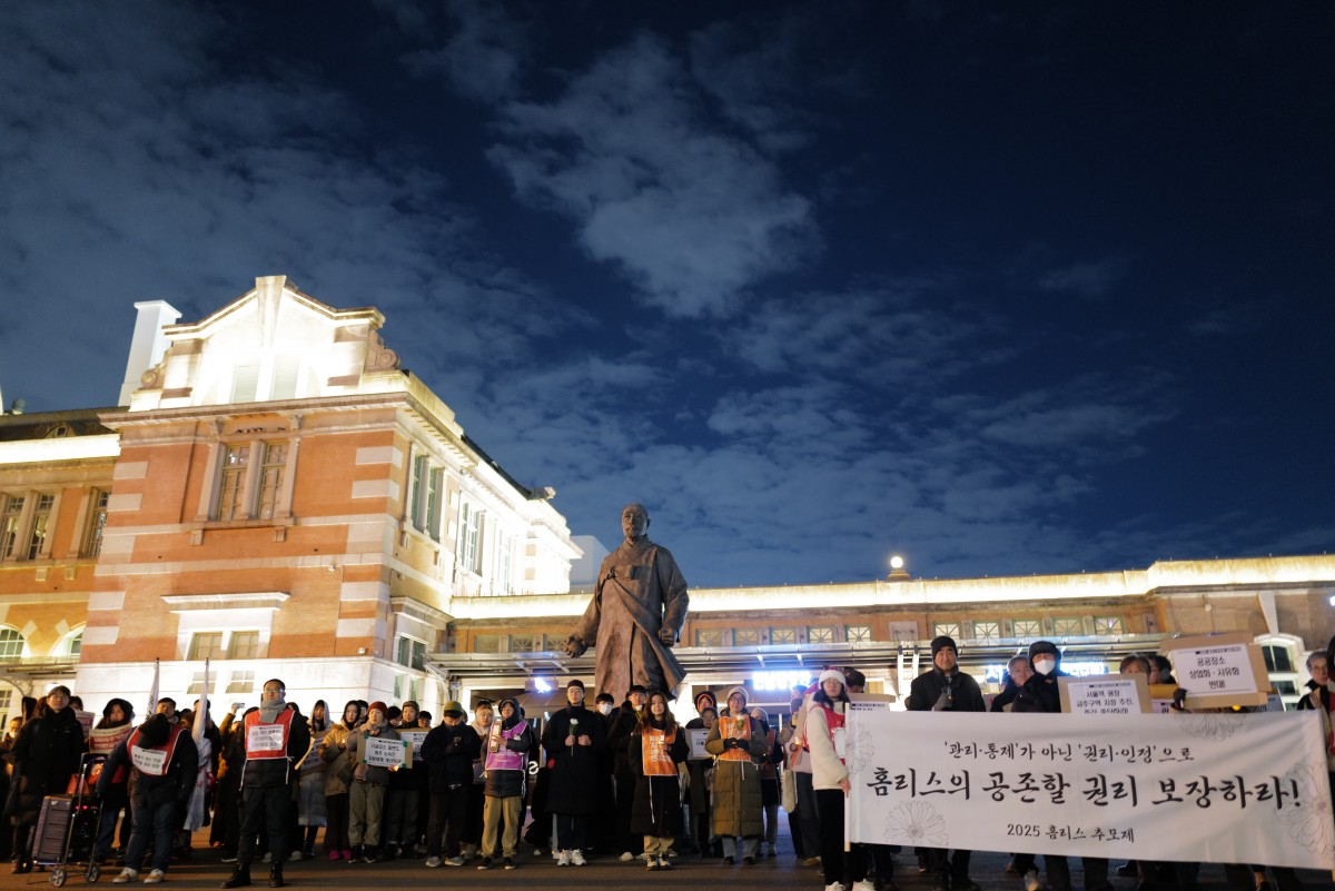 2025년 12월 22일, 서울역 광장에서 홈리스추모제가 있던 날입니다. 홈리스추모제는 겨울 중 가장 밤이 긴 날인, 동짓날에 한해 동안 거리, 쪽방, 고시원 등 외로이 삶을 마감한 홈리스 분들을 추모하기 위해 마련된 자리입니다. 나눔과미래는 매년 홈리스추모제공동주최 단위로 본 행사에 참여하고 있습니다.